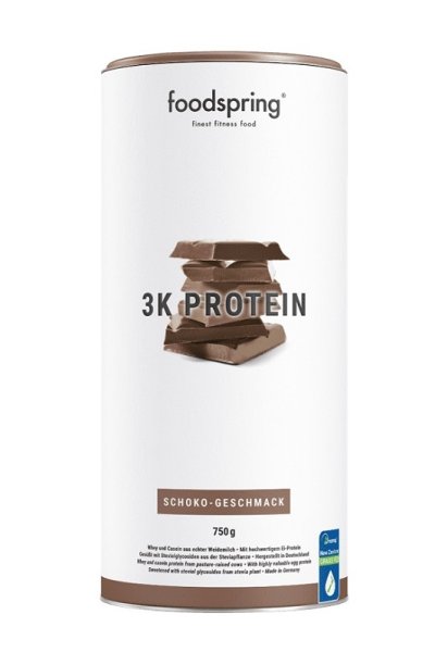 Concentrato di proteine del siero di latte (contiene emulsionante lecitina di girasole) (74%), caseinato di calcio (contiene emulsionante lecitina di girasole) (15%), cacao grezzo in polvere fortemente de-oliato (8%), proteine d’uovo di gallina (1%), aroma, addensante (xantano), dolcificante (glucosidi dello steviolo, sucralosio).