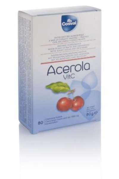 Integratore alimentare a base di estratti secchi di acerola (Malpighia glabra L.) e rosa canina (Rosa canina L.) che svolgono azione di sostegno e ricostituente coadiuvando le naturali difese dell’organismo rendendo disponibile vitamina C (Acido L-ascorbico). La presenza di ribes nero (Ribes nigrum L.) favorisce il benessere di naso e gola. Ogni tavoletta masticabile, di gusto gradevole, rende disponibili 125 mg di vitamina C (25% RDA); tale nutriente - nella fattispecie - contribuisce alla protezione delle cellule dallo stress ossidativo.