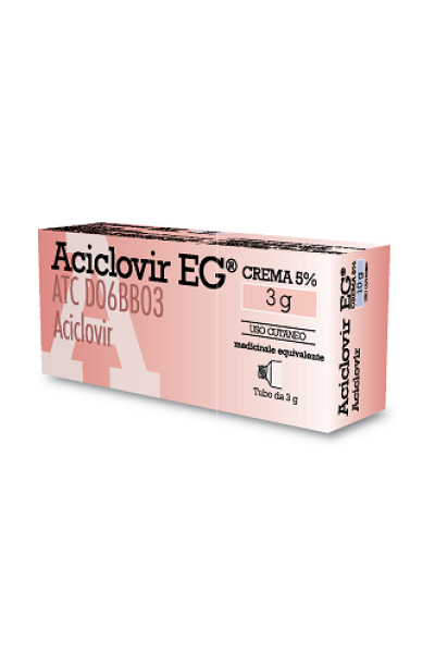 Controindicazioni/Effetti indesideratiACICLOVIR EG crema è controindicato nei pazienti con ipersensibilità nota all’aciclovir, al valaciclovir, al glicole propilenico o ad uno qualsiasi degli eccipienti di ACICLOVIR EG crema.