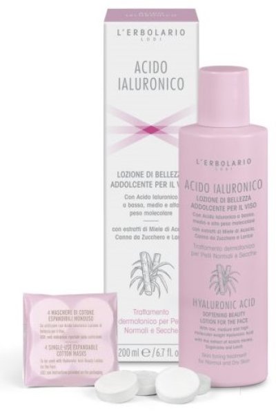 Trattamento dermotonico per pelli normali e secche, con Acido Ialuronico a basso, medio e alto peso molecolare con estratti di Miele di Acacia, Canna da Zucchero e Larice.