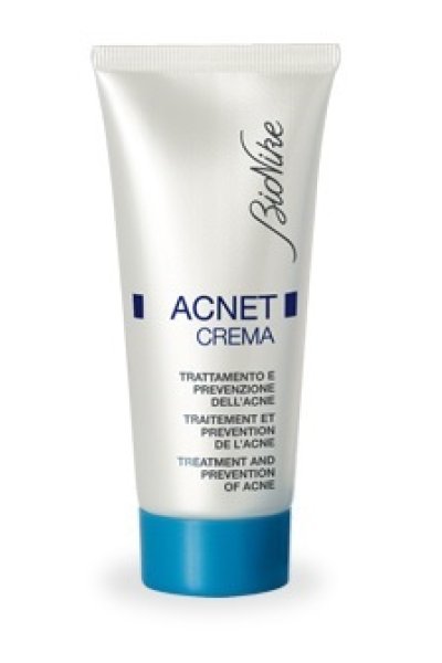 Dispositivo medico per il trattamento topico delI’acne leggera e moderata, caratterizzata dalla presenza di comedoni, papule e piccole pustole, come è in massima parte l’acne vulgaris o giovanile. Basata sull’azione sinergica di acido glicolico al 6% e acido salicilico all’1%, svolge un’equilibrata azione cheratolitica promuovendo il distacco dello strato corneo e il rinnovamento cellulare dell’epidermide. Facilita l’eliminazione dei comedoni (punti neri e punti bianchi) e la pulizia dei follicoli sebacei grazie a un effetto disaggregante diretto sul materiale che ostruisce l’orifizio e a un effetto cheratolitico sull’epitelio del dotto follicolare. La presenza di esteri degli alfa-idrossiacidi e di S-carbossimetil cisteina, che rilascia zolfo, consente inoltre di ridurre la seborrea nella zona trattata. Questi effetti sinergici agiscono sulla pelle acneica riducendo il numero delle lesioni e prevenendo la formazione di nuovi focolai di infiammazione ln tutti quei casi in cui la sintomatologia dell’acne è complicata da processi infettivi e infiammatori intensi, la terapia d’elezione è farmacologica; in questi casi Acnet Crema può essere utilizzata come coadiuvante durante il trattamento o durante la terapia di mantenimento. Grazie alla sua buona tollerabilità , può essere indicata in tutti quei casi cronici che richiedono un trattamento prolungato nel tempo.