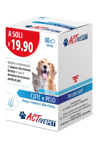 Mangime complementare di supporto alla funzione dermica in caso di dermatosi ed eccessiva perdita di peli.