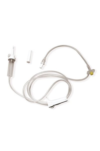 Provvisto di perforatore con cappuccio protettivo, filtro aria antibatterico con tappino di chiusura, camera di gocciolamento altamente trasparente, filtro soluzione 15-20 mcm e regolatore di flusso tipo roller. Cono Luer Lock. Sterile, monouso, apirogeno, atossico, latex free e ftalati free.