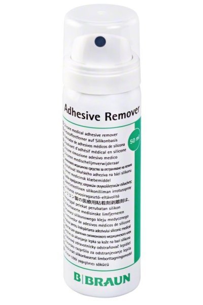 Soluzione spray per la rimozione delicata e indolore di presidi per stomia o incontinenza e medicazioni adesive dalla superfice cutanea.