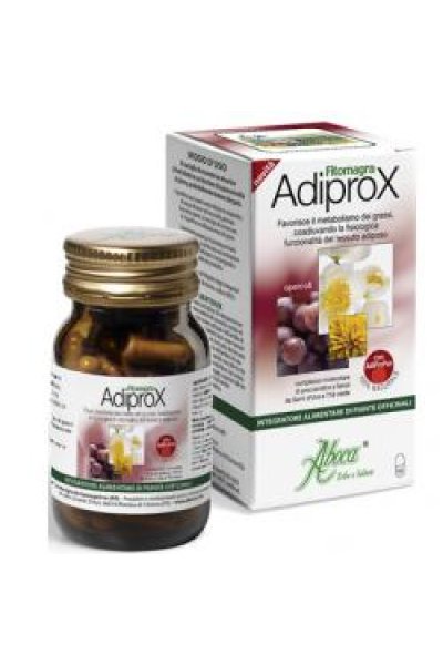 Complemento alimentare che favorisce il metabolismo dei grassi, coadiuvando la fisiologica funzionalità del tessuto adiposo. Adiprox opercoli è un valido aiuto per il controllo del peso, nell’ambito di regimi dietetici ipocalorici, grazie alla presenza di AdiProFen, complesso molecolare 100% naturale di procianidine e fenoli da semi d’uva e tè verde. AdiProFen è utile per coadiuvare la fisiologica funzionalità del microcircolo e del tessuto adiposo, in quanto aiuta a combattere lo stress ossidativo e supportare i processi di termogenesi. Completa l’azione di Adiprox il concentrato totale di tarassaco che esplica un’azione depurativa dell’organismo.Ingredienti