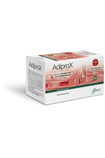 Adiprox tisana è indicata nell'ambito di regimi dietetici ipocalorici, grazie all'estratto liofilizzato di Thè Verde, utile nel supportare il metabolismo del tessuto adiposo e i processi di termogenesi (ossidazione dei grassi), unito ai semi d'Uva dalle proprietà antiossidanti e favorenti la funzionalità del microcircolo. Il coestratto liofilizzato di Thè Verde e Semi d'Uva costituisce Adiprofen®, complesso molecolare 100% naturale di procianidine e fenoli.