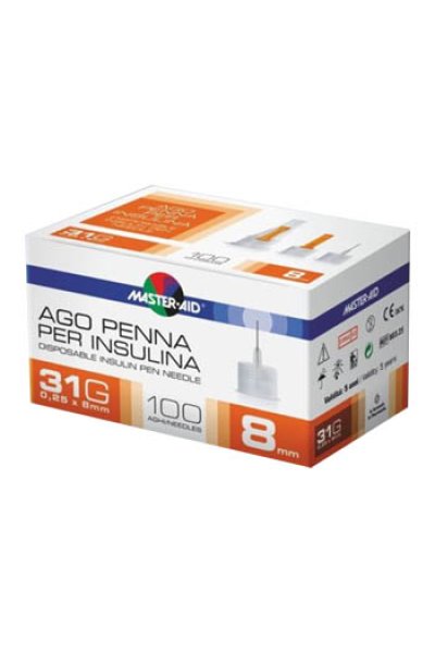 Ago inserito al centro di un supporto in materiale plastico infrangibile, da un cappuccio di protezione (che viene rimosso dopo l'avvitamento dell'ago sulla penna da insulina e utile per rimuovere l'ago dopo l'iniezione) e un copri ago. L'ago permette una elevata velocità di erogazione del liquido iniettabile facilitando di conseguenza l'erogazione del farmaco. L'ago ha una triplice affilatura grazie all'utilizzo di tecnologie di taglio laser che prevengono la presenza di sbavature e permettono, di conseguenza, un'iniezione realmente indolore. L'ago penetra nei tessuti riducendo il trauma locale ed il conseguente dolore. Gli aghi penna Master-Aid sono compatibili con le principali penne da insulina.