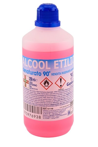 Alcool etilico denaturato 90° è indicato per usi igienici, farmaceutici e ospedalieri grazie alle sue proprietà detergenti e disinfettanti in grado di ridurre la carica batterica.