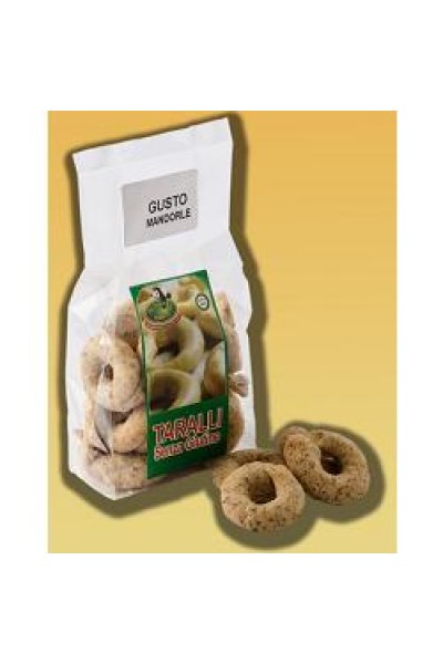 Prodotto da forno senza glutine, taralli gusto mandorle.Ingredienti