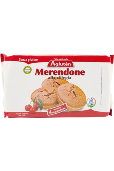 Merendine soffici, senza glutine, farcite alla ciliegia.Contengono uovo e latte.