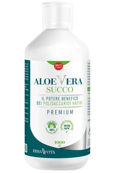 Aloe vera (Aloe barbadensis Mill.) succo del gel fogliare (gelum sine cute puro al 100%), titolato al 10% in polissacaridi; acidificante: acido citrico; conservanti: sodio benzoato, potassio sorbato.