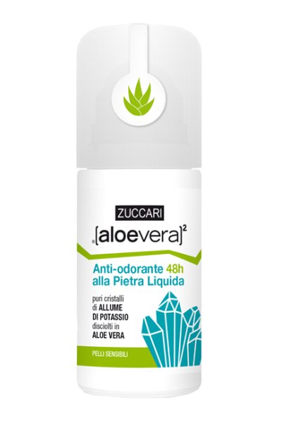 Antiodorante per pelli sensibili, intolleranti e soggette ad arrossamenti grazie alla formula arricchita con puri cristalli di allume di potassio disciolti in Aloevera2.