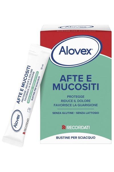 Dispositivo medico indicato per la gestione dei sintomi dolorosi delle afte e della mucosite della cavità orofaringea. Alovex Afte e Mucositi esplica la sua azione antidolorifica grazie alle sue spiccate proprietà mucoadesive che gli permettono di formare una barriera protettiva sulla mucosa orale. Il film protettivo protegge da insulti esterni favorendo la guarigione delle lesioni, mantenendo l’ambiente idratato e lubrificato.