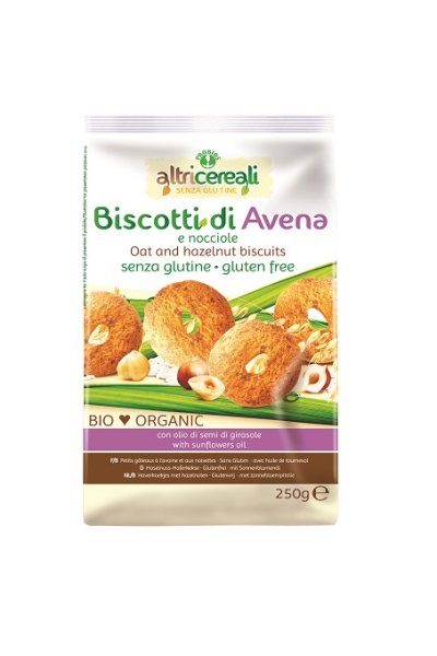 *zucchero di canna, *farina integrale di avena, *farina integrale di riso, *olio di semi di girasole, *uova, *nocciole, *crusca di riso, *fiocchi di avena, sale, agenti lievitanti (tartrati di potassio, carbonati di sodio, carbonati di ammonio), aroma naturale, antiossidante: *estratti di rosmarino.