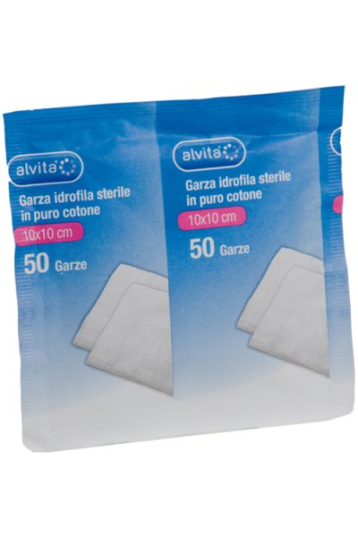 Compresse per medicazione di garza idrofila sterile monouso, in puro cotone idrofilo 100%.