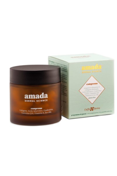 Integratore alimentare a base di collagene di tipo II, acido ialuronico, condroitina e coenzima Q10. Con zinco e vitamina E che proteggono le cellule dallo stress ossidativo. Lo zinco contribuisce anche al mantenimento di una pelle normale. Amada compresse è costituito da un complesso di attivi altamente biodisponibili e ben tollerati, e rappresenta un valido supporto nel combattere i segni dell'invecchiamento sulla pelle. Ideale nella preparazione e nel follow up dei trattamenti di estetica, in quanto stabilizza l'applicazione dei filler di collagene e acido ialuronico. Agisce dall'interno e conferisce elasticità, idratazione e compattezza all'epidermide, riducendo la comparsa di linee sottili e rughe, per una pelle dall'aspetto più giovane e luminoso.