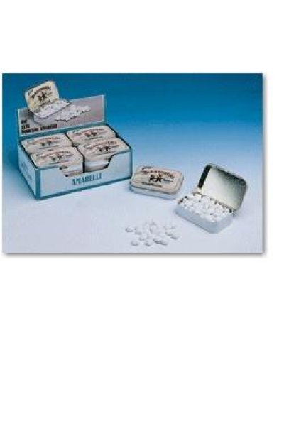 Caratteristiche:favette di liquirizia pura alla menta, confettate con un sottile strato di zucchero, in scatola metallica.