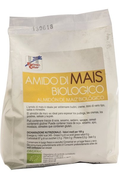 L'amido di mais è ideale per addensare budini, creme, salse e minestre. Può anche essere aggiunto a dolci di vario tipo per renderli più soffici e leggeri.Prodotto da agricoltura biologica.