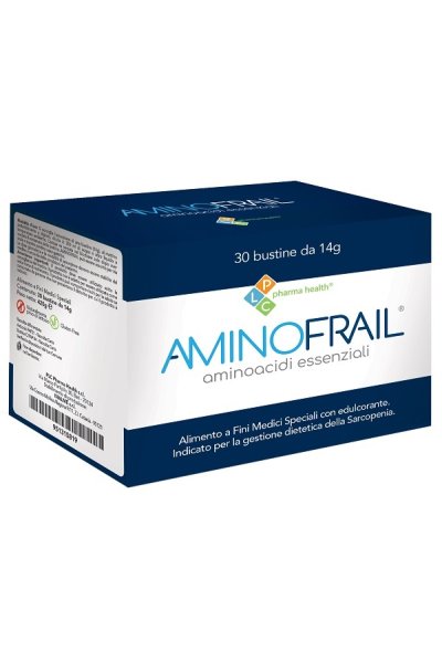 Alimento a fini medici speciali appositamente formulato per la gestione dietetica della sarcopenia, presente nell'anziano fragile, e di condizioni caratterizzate da decadimento muscolare localizzato. Aminofrail contiene tutti i nove aminoacidi essenziali, con un rapporto stechiometrico tra loro uguale a quello dei fabbisogni indicati dall'OMS. Per un maggior recupero della massa e della forza muscolare, la composizione di AMINOFRAIL è stata completata con taurina, vitamina D3 e vitamina B6 le cui carenze sono fortemente correlate alla diminuzione dalla forza muscolare e dunque all'insorgenza di sarcopenia.