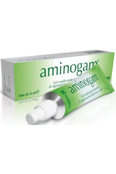 Ipersensibilità accertata verso i componenti. Non sono noti fenomeni di sovradosaggio. Non sono noti effetti collaterali. Non sono note interazioni con farmaci e sostanze medicinali. Aminogam è un prodotto caratterizzato dall'elevata tollerabilità, tuttavia raramente possono verificarsi reazioni di tipo locale, dovute a fenomeni di ipersensibilizzazione, destinate a risolversi spontaneamente. L'utilizzo protratto oltre i 30 giorni deve essere svolto sotto il controllo del medico.