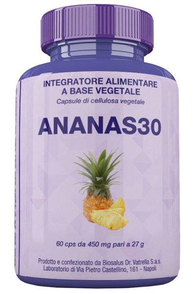 Ananas (Ananas sativus L. gambo titolato al 5% in bromelina) estratto secco; costituenti delle capsule: cellulosa vegetale.