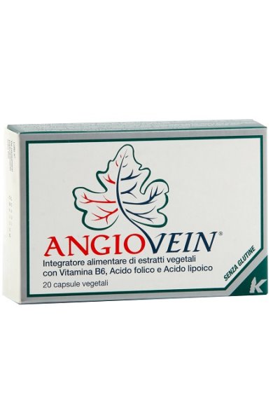 Integratore alimentare a base di acido lipoico, piridossina (vitamina B6), acido folico (vitamina B9) ed estratti vegetali secchi di centella asiatica, aesculus hippocastanum, allium sativum, ginkgo biloba, andrographis paniculata e vitis vinifera, utile per colmare le carenze o gli aumentati fabbisogni di tali nutrienti. Angiovein fornisce un apporto di nutrienti quali centella asiatica, gingko biloba, aesculus hyppocastanum e vitis vinifera utili per favorire la funzionalità del microcircolo. La composizione è anche caratterizzata dalla presenza di gingko biloba, allium sativum e vitis vinifera, piante note per il loro effetto antiossidante, utili per contrastare l'azione dei radicali liberi.Senza glutine.