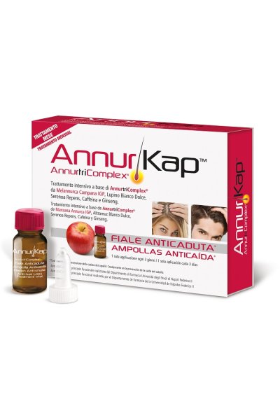 Trattamento intensivo anticaduta, basato sull'esclusivo principio funzionale annurtricomplex da melannurca campana igp, sviluppato dal dipartimento di farmacia dell'università federico ii. Associato ad anageline, un prezioso estratto del lupino bianco dolce, serenoa repens, caffeina e panax ginseng, da vita al complesso formulativo coadiuvante nel rinvigorire e nel fornire ai capelli nuova energia, rendendoli più forti, vitali e ricostituiti. La presenza di olio essenziale di timo limita la secrezione sebacea, agevolando l'assorbimento del preparato.