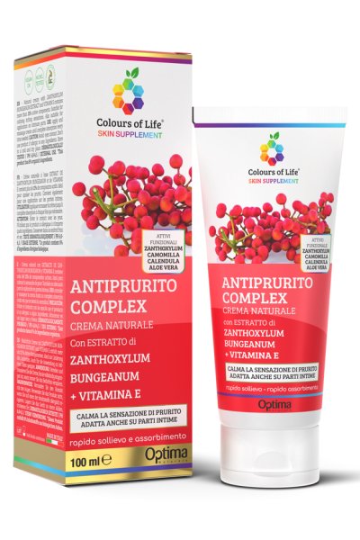 Crema naturale con estratto di Zanthoxylum bungeanum; estratti di camomilla e calendula; con aloe vera e vitamina E. Antiprurito Complex è realizzata con estratti naturali e contiene più dell'11% di componenti attivi. Ideale per trattare pruriti di qualunque genere, adatta anche ad applicazione su parti intime esterne. Contiene: