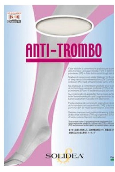 Calze a compressione graduata per la prevenzione della trombosi venosa profonda (TVP) e dell’embolia polmonare (EP). Lo speciale tessuto a maglia tridimensionale le rende morbide e confortevoli. Sono realizzate in filato batteriostatico che grazie alla presenza de ioni d’argento ostacola la proliferazione batterica garantendo il mantenimento dell’equilibrio biologico della pelle. Indicate in caso di interventi chirurgici, in caso di parto, di lungo allettamento soprattutto nei pazienti anziani, neurologici, politraumatizzati.Colore: bianco.