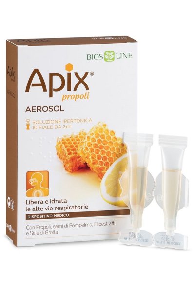Dispositivo medico CE di classe I, ideale per la pulizia e l'idratazione delle vie respiratorie e per favorire l'eliminazione del muco in eccesso; utile in caso di esposizione agli agenti inquinanti, smog, fumo e polvere, sbalzi termici e colpi di freddo che possono provocare infiammazioni.Contiene un sale con una particolare composizione, estratto idroglicerico di Propoli, estratto glicerico di semi di Pompelmo, estratto secco di Camomila ricco in Apigenina, Eucaliptolo ed olio essenziale di Timo.