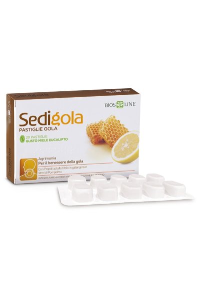 Sedigola Pastiglie Gola è utile per il benessere della gola grazie al suo contenuto di agrimonia, erba o cinale ricca in tannini. La sua formulazione associa le ben note proprietà della propoli con quelle antiossidanti dei semi di pompelmo; inoltre contiene eucalipto che esercita un'azione emolliente e lenitiva sulla mucosa orofaringea e sul tono della voce. Il miele e gli oli essenziali di cannella e menta conferiscono al prodotto un particolare effetto rinfrescante. Sedigola Pastiglie Gola può risultare utile anche a chi è esposto a freddo, fumo, smog e polveri.