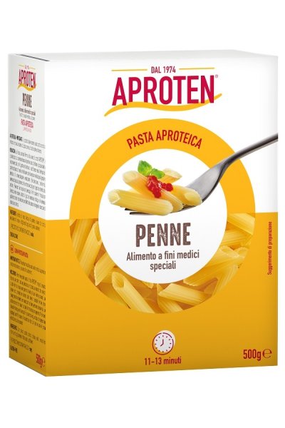 La Pasta aproteica della linea di prodotti APROTEN, è caratterizzata da: contenuto basso di proteine, sodio, fosforo e potassio che la rendono indicata per la gestione dietetica di insufficienze renali (nefropatie); contenuto basso di tirosina e fenilalanina che la rendono indicata per la gestione dietetica di aminoacidopatie metaboliche (fenilchetonuria, tirosinemia); contenuto basso di proteine che la rendono indicata per la gestione dietetica del morbo di Parkinson (in terapia con Levodopa). Per il paziente in terapia con Levodopa deve essere valutato il grado di eventuale disfagia e le eventuali problematiche di malnutrizione per difetto che possono insorgere in condizioni di restrizione proteica.