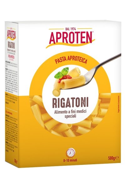 La Pasta aproteica della linea di prodotti APROTEN, è caratterizzata da: contenuto basso di proteine, sodio, fosforo e potassio che la rendono indicata per la gestione dietetica di insufficienze renali (nefropatie); contenuto basso di tirosina e fenilalanina che la rendono indicata per la gestione dietetica di aminoacidopatie metaboliche (fenilchetonuria, tirosinemia); contenuto basso di proteine che la rendono indicata per la gestione dietetica del morbo di Parkinson (in terapia con Levodopa). Per il paziente in terapia con Levodopa deve essere valutato il grado di eventuale disfagia e le eventuali problematiche di malnutrizione per difetto che possono insorgere in condizioni di restrizione proteica.