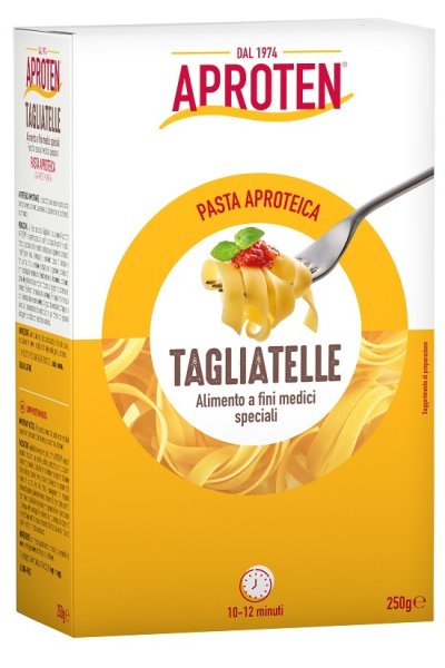 La Pasta aproteica della linea di prodotti APROTEN, è caratterizzata da: contenuto basso di proteine, sodio, fosforo e potassio che la rendono indicata per la gestione dietetica di insufficienze renali (nefropatie); contenuto basso di tirosina e fenilalanina che la rendono indicata per la gestione dietetica di aminoacidopatie metaboliche (fenilchetonuria, tirosinemia); contenuto basso di proteine che la rendono indicata per la gestione dietetica del morbo di Parkinson (in terapia con Levodopa). Per il paziente in terapia con Levodopa deve essere valutato il grado di eventuale disfagia e le eventuali problematiche di malnutrizione per difetto che possono insorgere in condizioni di restrizione proteica.