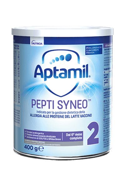 Aptamil Pepti Syneo 2 è indicato per il lattante dopo il 6° mese e non deve essere utilizzato come unica fonte di nutrimento ma è da intendersi all’interno di una dieta diversificata.