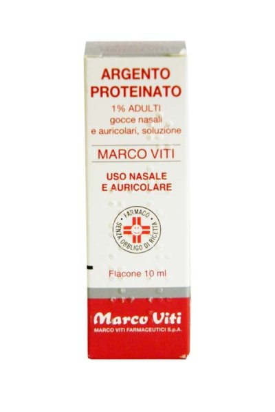 Argento proteinato Marco Viti Bambini 0,5% gocce nasali e auricolari, soluzione 100 g di soluzione contengono: Principio attivo: argento proteinato g 0,5 Argento proteinato Marco Viti Adulti 1% gocce nasali e auricolari, soluzione 100 g di soluzione contengono: Principio attivo: argento proteinato g 1 Argento proteinato Marco Viti Adulti 2% gocce nasali e auricolari, soluzione 100 g di soluzione contengono: Principio attivo: argento proteinato g 2 Per l’elenco completo degli eccipienti, vedere paragrafo 6.1.