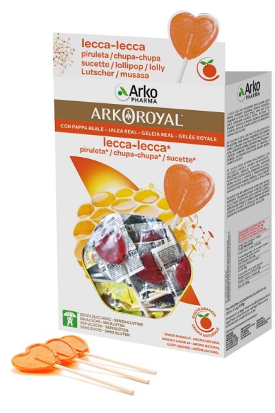 Edulcoranti (isomalto, sucralosio), regolatore di acidità (acido citrico), pappa reale (0,2%), agente umidificante (glicerolo), aroma naturale di arancia e sostanze alimentari coloranti (concentrato di carota e zucca).