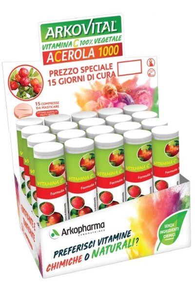 Integratore alimentare a base di Acerola. Con zucchero ed edulcorante.
