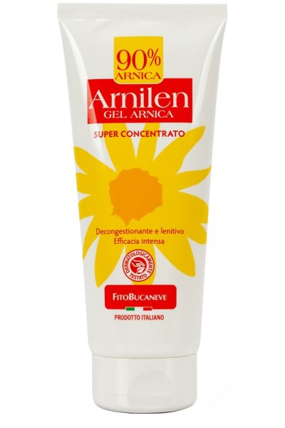 Gel dermocosmetico funzionale che contiene il 90% di estratto di Arnica. L'Arnica è una pianta erbacea ricca in sostanze funzionali, tra cui l’Elenanina, conosciuta da sempre per le sue proprietà decongestionanti, lenitive e coadiuvanti per muscoli, tendini, articolazioni. Il Timo contenuto, con la sua proprietà antisettica, in sinergia con la Menta piperita e la Salvia arricchisce e completa il prodotto. Arnilen 90%, applicato sulla pelle, dona un'immediata sensazione di freschezza e, grazie alla miscela di oli essenziali contenuti, rilascia una profumazione delicata e rilassante.