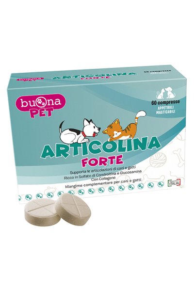 DescrizioneMangime complementare per cani e gatti formulato in compresse masticabili ed appetibili con Solfato di condroitina, Glucosamina e Collagene per supportare la normale funzione delle strutture articolari.