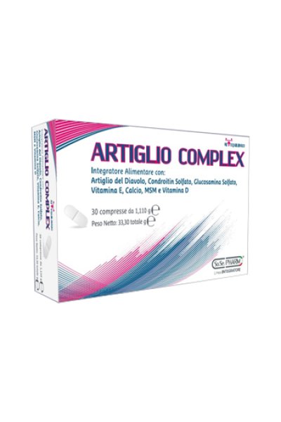 Integratore alimentare con artiglio del diavolo, condroitin solfato, glucosamina solfato, vitamina E, calcio, MSM e vitamina D.