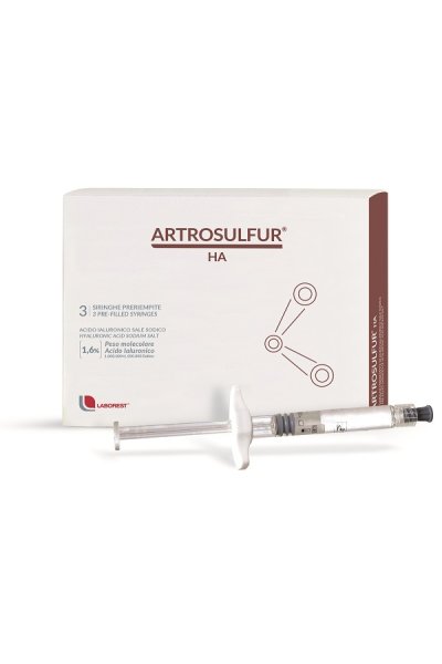 Dispositivo medico CE 0373 di classe III. Siringa preriempita a base di ialuronato di sodio [1,6%] di peso molecolare medio (1.000 KDa). La viscosupplementazione di acido ialuronico è indicata per contrastare i fenomeni flogistici e dolorosi, a carico delle articolazioni, dovute a processi degenerativi delle cartilagini. Inoltre facilita la ripresa delle funzionalità reologiche delle articolazioni.