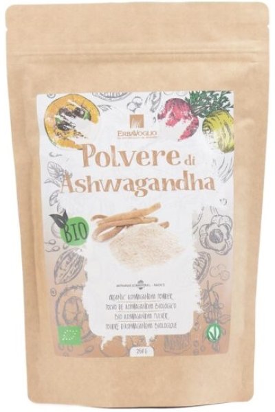 Polvere biologica di ashwagandha con proprietà adattogene che favoriscono la naturale capacità del corpo di resistere a stress emotivo e fisico.