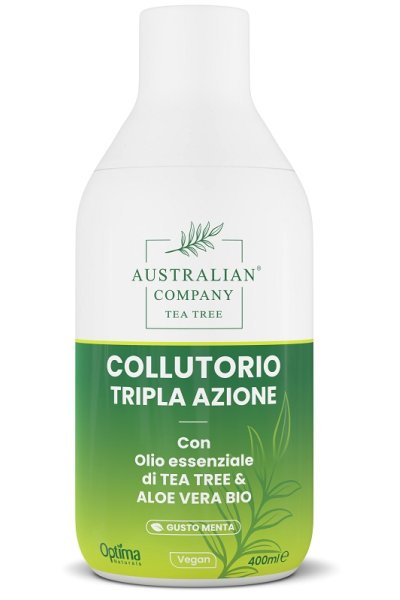 DescrizioneCollutorio tripla azione con olio essenziale di tea tree e aloe vera biologica.