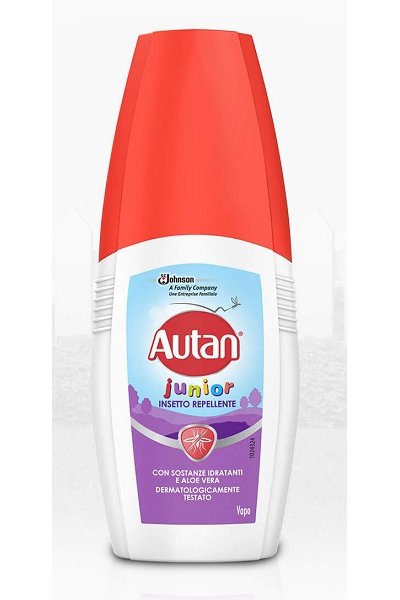 Autan Junior Vapo è un insetto-repellente con aloe vera che difende da punture di zanzare comuni (Culex pipiens) e zanzare tigre (Aedes albopictus) e altri insetti molesti, lasciando la pelle morbida e profumata. Autan forma sulla pelle una barriera impenetrabile agli insetti molesti per 3/4 ore. Il principio attivo, le sostanze idratanti e la formula dermatologicamente testata rendono il prodotto ben tollerato, quindi adatto anche ai bambini di età superiore ai 3 anni e alle pelli sensibili.