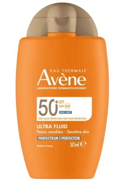Protezione colorata SPF50+ molto alta per il viso, quotidiana, ultra fluida, contro i raggi UVB, UVA, luce blu e inquinamento, per una pelle uniforme e luminosa.