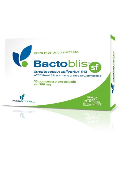 Integratore alimentare probiotico contenente streptococcus salivarius K12 (BLIS K12), un ceppo probiotico tipizzato, utile per favorire l'equilibrio della flora batterica.