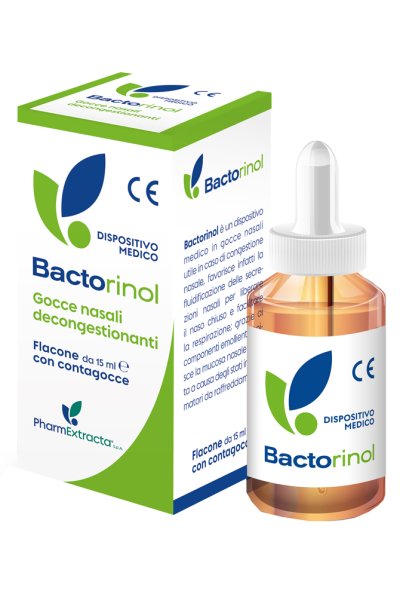 Bactorinol è un dispositivo medico in gocce nasali utile in caso di congestione nasale, favorisce infatti la fluidificazione delle secrezioni nasali per liberare il naso chiuso e facilitare la respirazione; grazie ai componenti emollienti, lenisce la mucosa nasale irritata a causa degli stati infiammatori da raffreddamento.