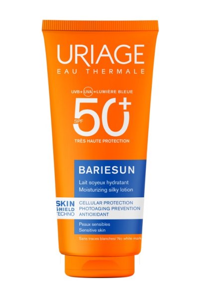 Latte vellutato idratante SPF 50+, protezione molto elevata UVB, UVA, luce blu. Aiuta a prevenire il fotoinvecchiamento causati da UV e luce visibile. Finish invisibile. Non appiccicoso. Non comedogeno. Non pizzica gli occhi. Resistente all'acqua.