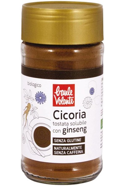 Cicoria tostata solubile con Ginseng. Naturalmente senza caffeina e senza zuccheri aggiunti.